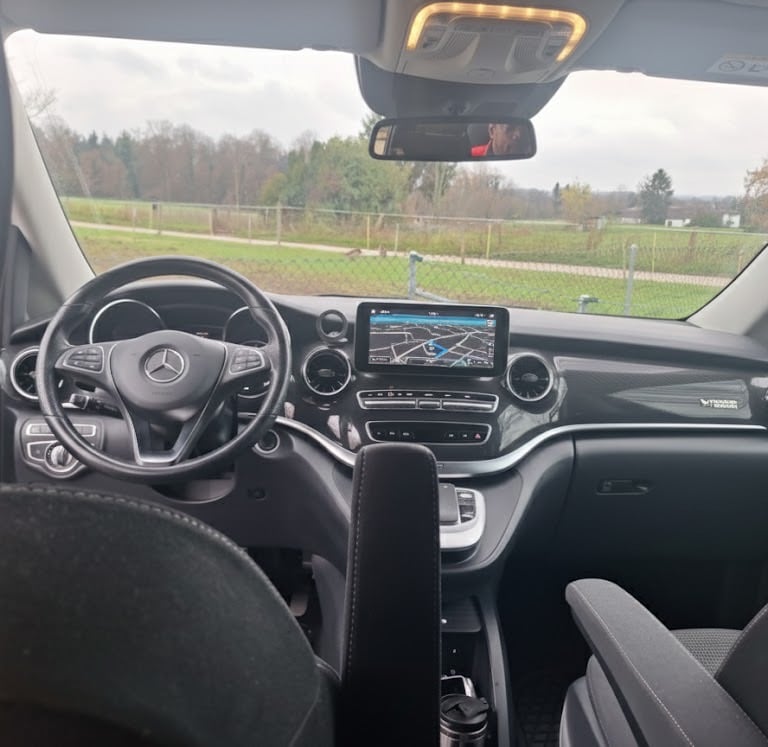 Unsere luxuriöse Mercedes-Benz V-Klasse ist das perfekte Fahrzeug für bis zu 7 Personen. Als Premium-Limousine bietet sie höchsten Komfort für Flughafentransfers, Business-Fahrten und VIP-Transporte in Basel und der Region.